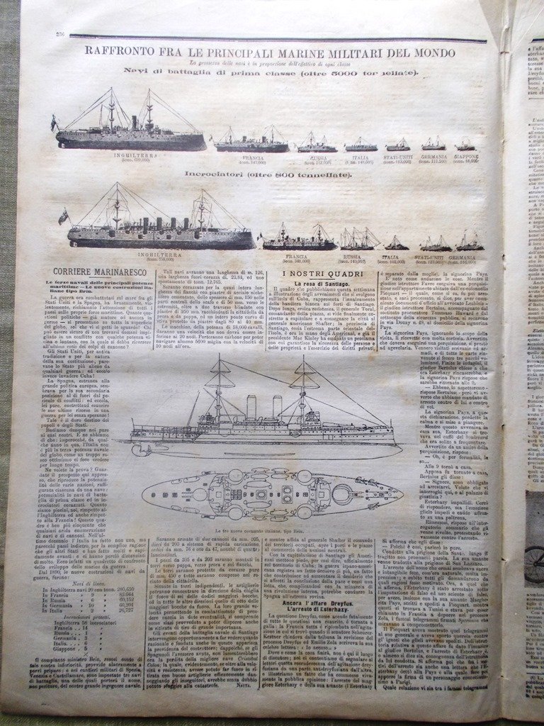 La Tribuna Illustrata 24 Luglio 1898 Resa Santiago Cuba Marina Militare Dreyfus
