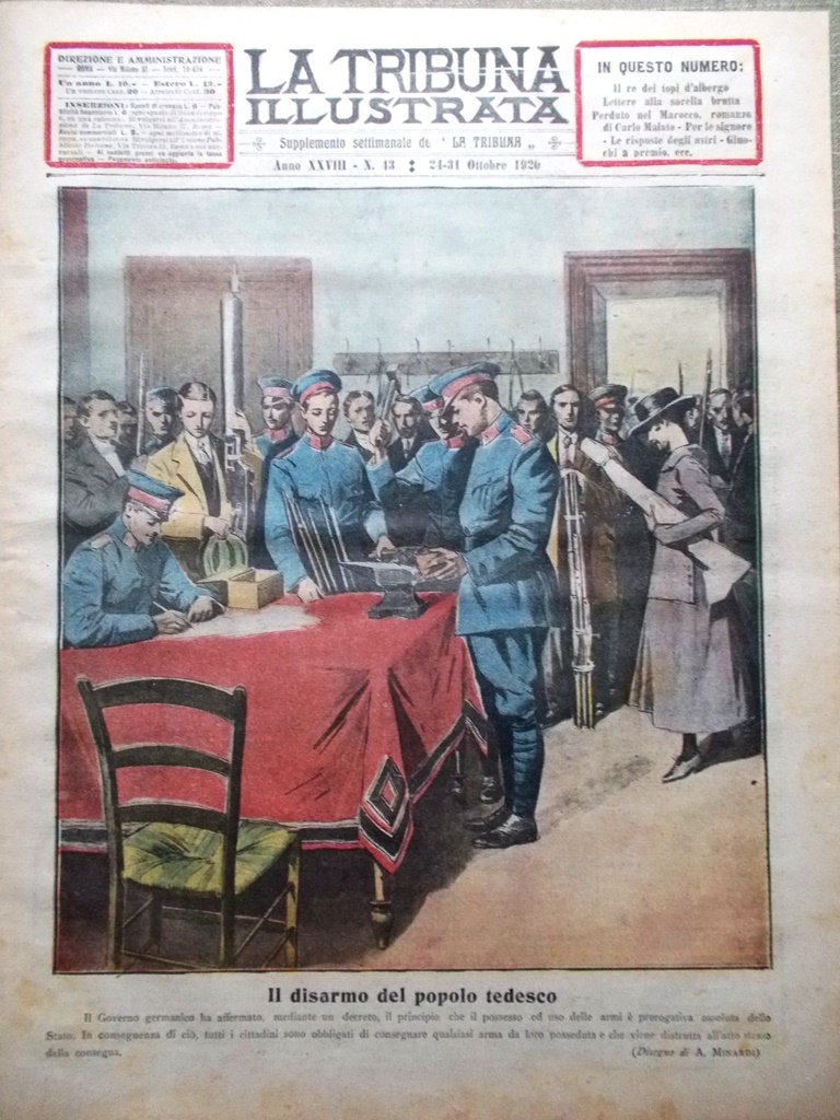 La Tribuna Illustrata 24 Ottobre 1920 Disarmo in Germania Tripolitania Illusioni