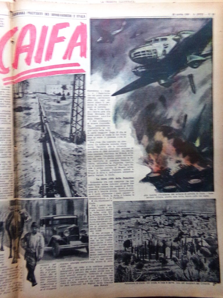 La Tribuna Illustrata 25 Agosto 1940 WW2 Bombe Haifa Parigi Spagna Gambi Vicini