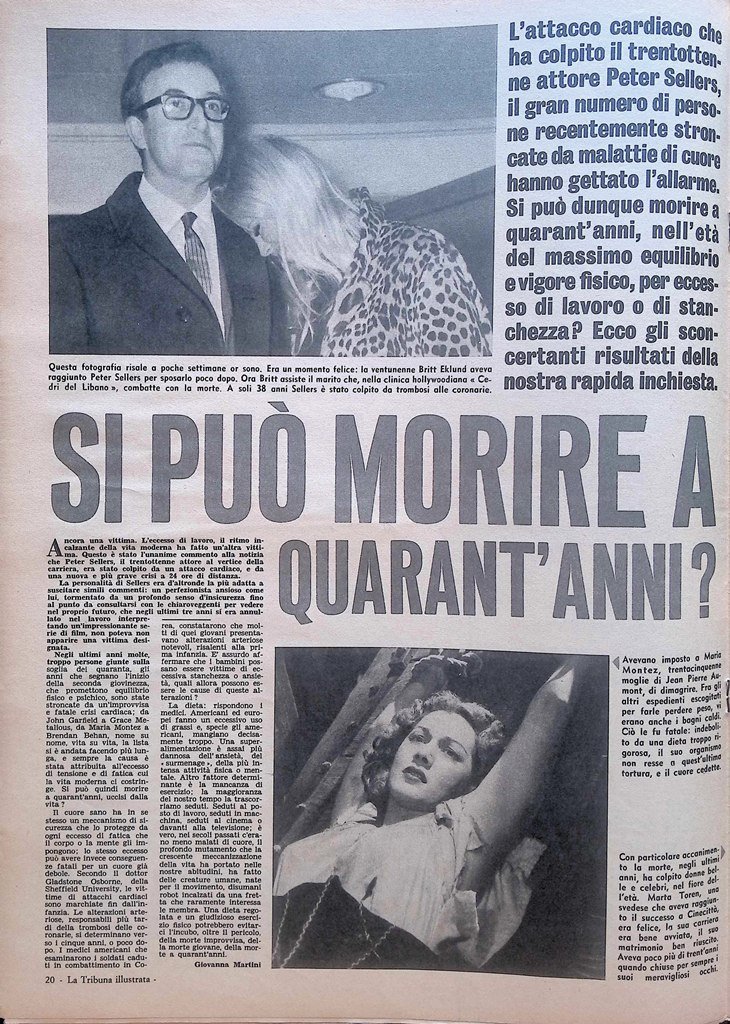 L'attacco cardiaco ha colpito il trentottenne attore Peter Sellers e altri attori che sono sfortunatamente morto giovani come Robert Walker, Gail Russel e Brendan Behan