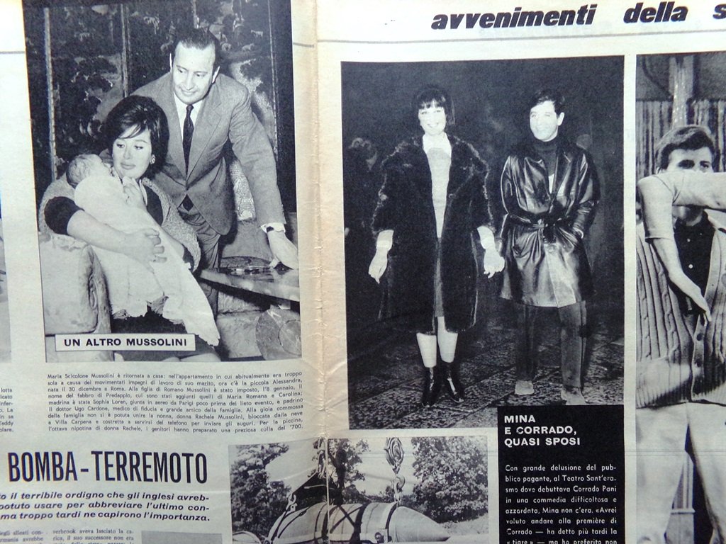 Avvenimenti della settimana: Mina e Corrado quasi sposi, la nascita di Alessandra Mussolini, John Wayne non ha bisogno di controfigure