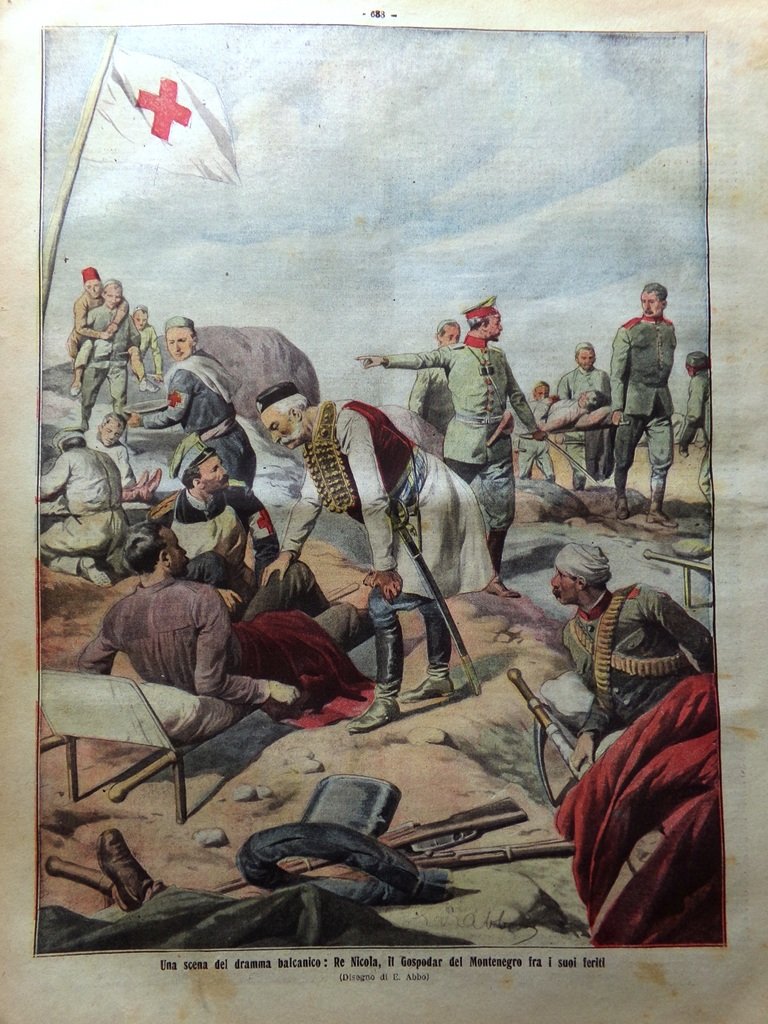 Una scena del dramma balcanico: Re Nicola, il Gospodar del Montenegro fra i suoi feriti