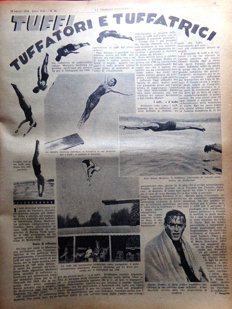 La Tribuna Illustrata 28 Agosto 1938 Nozze Tibet Tuffatori Gambi Telefono Acerbo