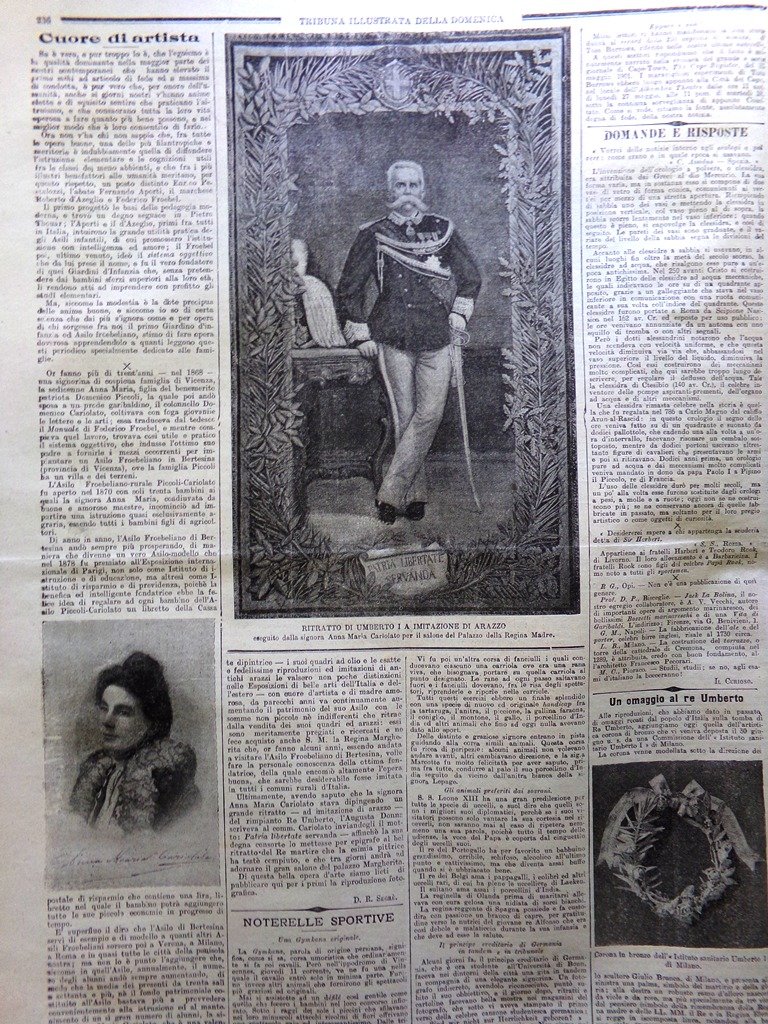 La Tribuna Illustrata 28 Luglio 1901 Custoza Monza Ritratto Re Umberto Cariolato