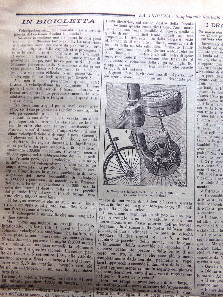 La Tribuna Illustrata 28 Maggio 1893 Jacob Moleschott Palestro Bicicletta Corse