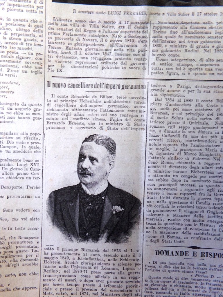 Il nuovo cancelliere dell'impero tedesco Bernard de Bulow.