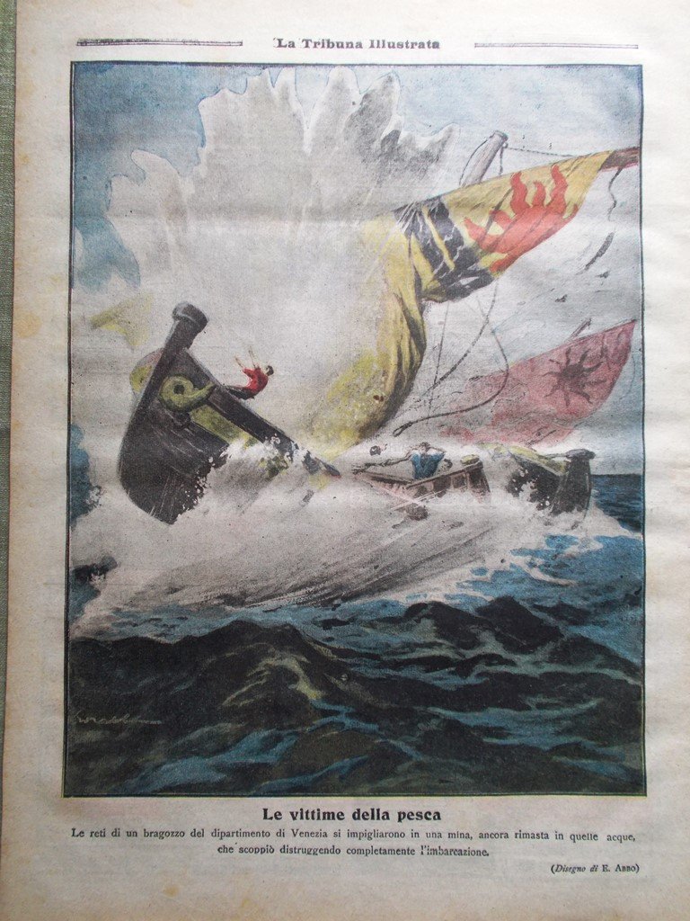 Le vittime della pesca a Venezia per colpa di una mina (disegno di E. Abbo)