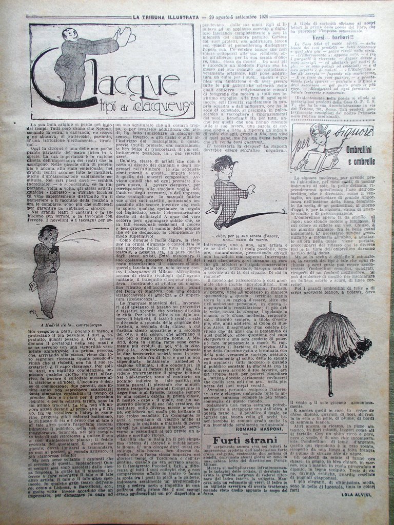 La Tribuna Illustrata 29 Agosto 1920 Ombrelli Curlandia Colonia Nettuno Vittoria