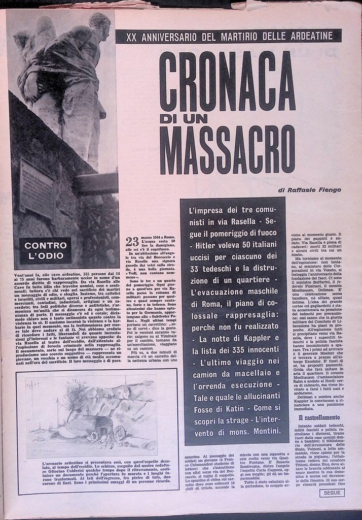 La Tribuna Illustrata 29 Marzo 1964 Fosse Ardeatine Tharanat Stalin Black Hayes