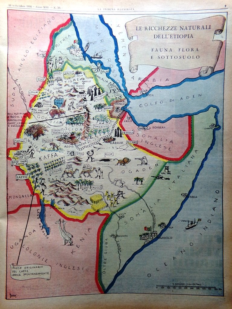 Le ricchezze naturali dell'Etiopia, fauna flora e sottosuolo (cartina a colori)