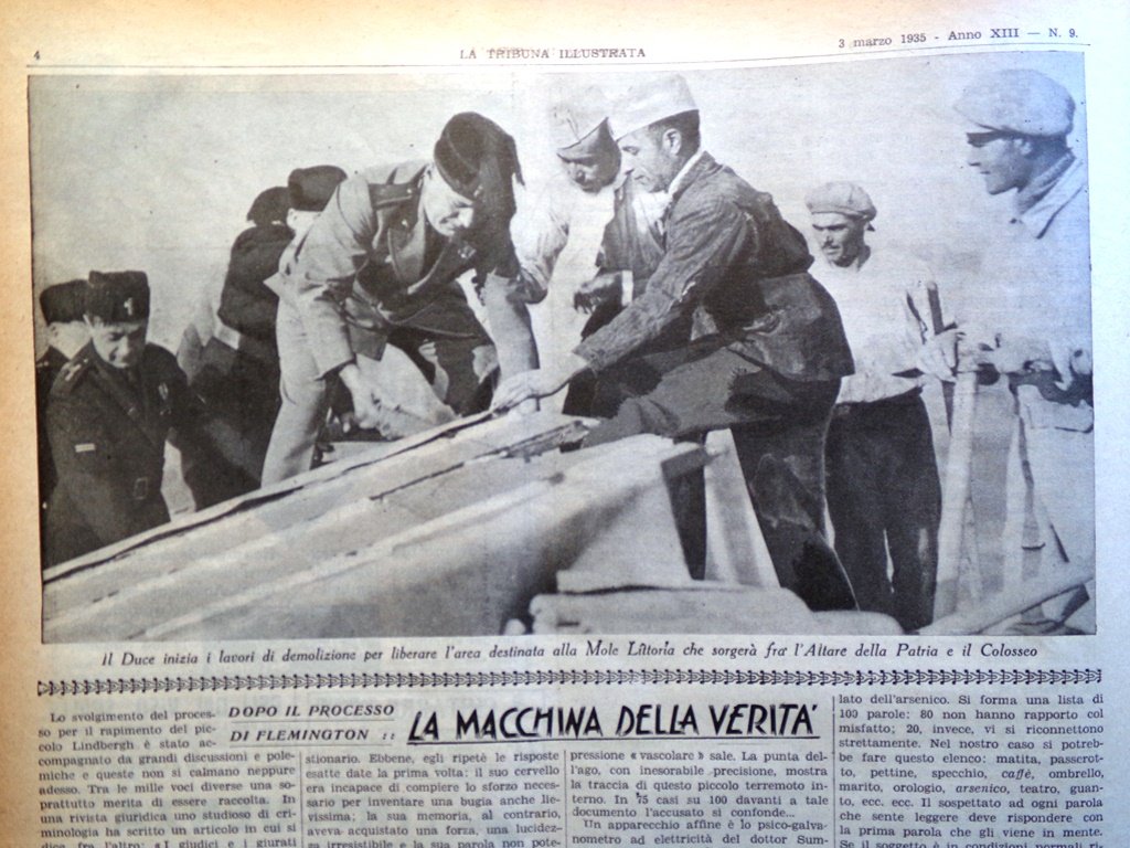 Il Duce inizia i lavori di demolizione per liberare l'area destinata alla Mole Littoria (fotografia)