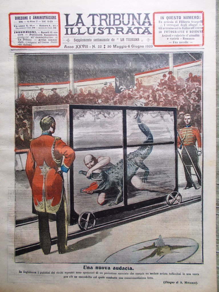 Una nuova audacia: in Inghilterra i pubblici dei circhi equestri hanno assistito a un artista che combatteva con un coccodrillo (disegno di A. Minardi)