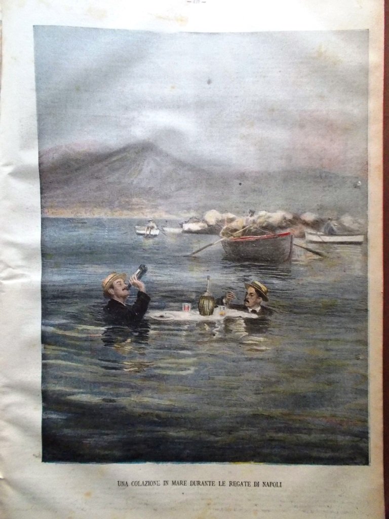 Una colazione in mare durante le regate di Napoli (Stampa a colori)