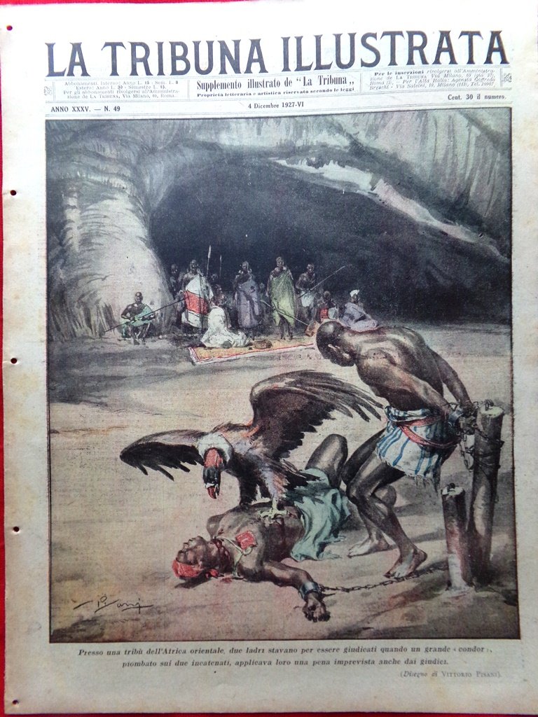 Presso una tribù dell'Africa orientale due ladri stavano per essere giudicati quando un grande "condor" piombato sui due incatenati applicava loro una pena imprevista anche dai giudici (disegno di Vittorio Pisani)