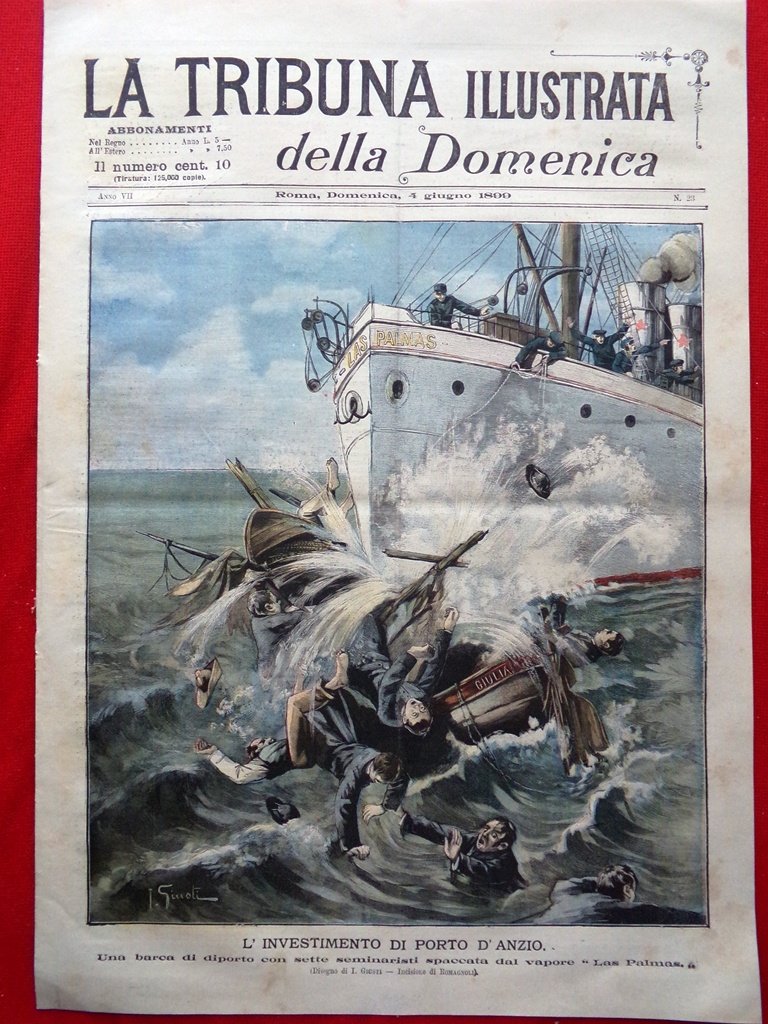 L'investimento di Porto D'Anzio - una barca di diporto con sette seminaristi spaccata dal vapore "Las Palmas" (disegno di I. Giusti)