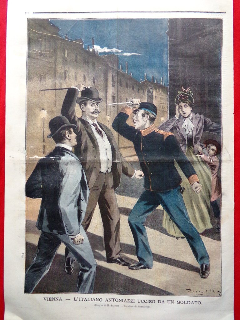 Vienna: l'italiano Francesco Antoniazzi ucciso da un soldato (disegno di E. Zanetti)