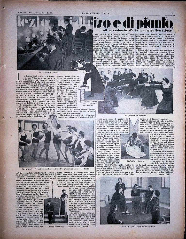 La Tribuna Illustrata 4 Ottobre 1936 Accademia Duse Italiane in Costume Barbero