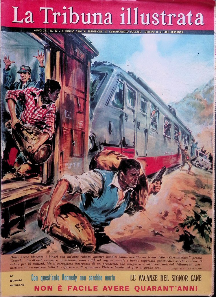 Dopo avere bloccato i binari con un'auto rubata, quattro banditi hanno assalito un treno della "Circumetnea" presso Catania : due di essi, armati e mascherati, sono saliti sul vagone postale e hanno asportato quattordici sacchi contenenti valori per 25 milioni. Ma il coraggioso intervento di un procaccia, che inseguiva e catturava uno dei delinquenti, permetteva di recuperare tutta la refurtiva e di sgominare l'intera banda nel giro di poche ore.