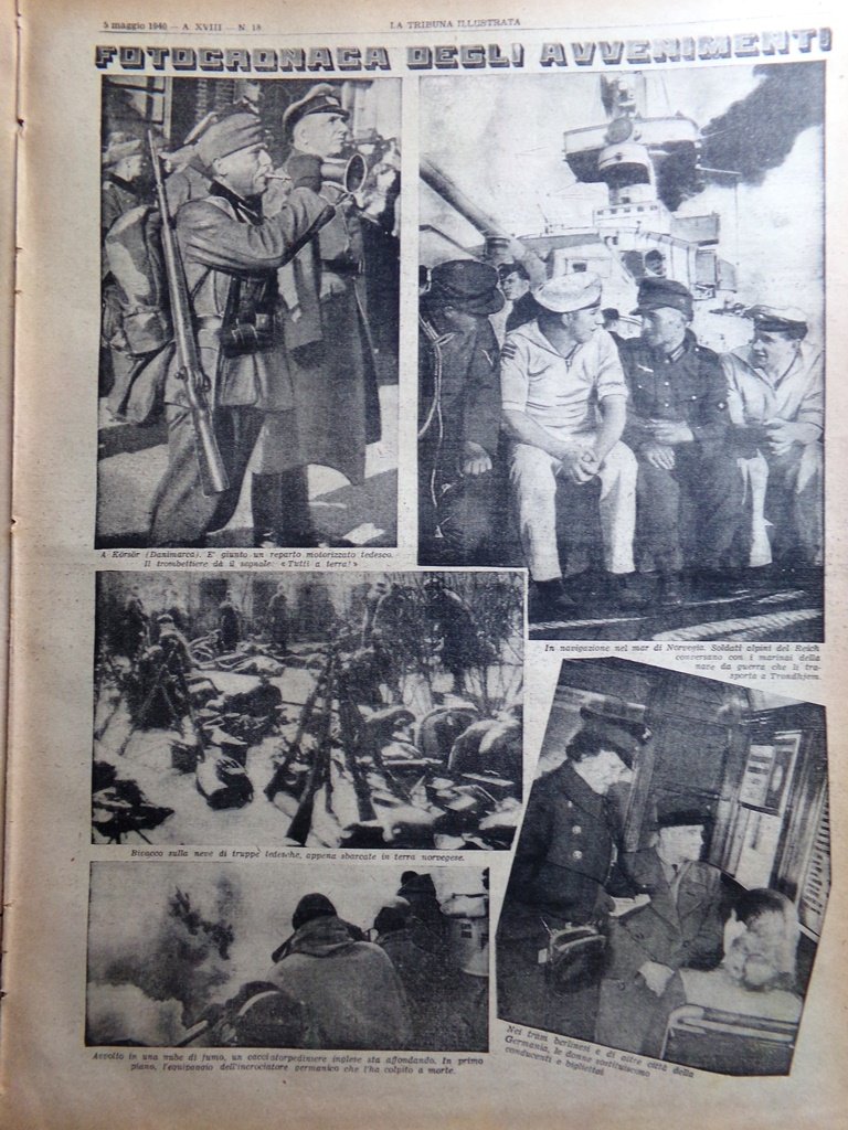 La Tribuna Illustrata 5 Maggio 1940 WW2 Narvik Norvegia Paganini Commediografo
