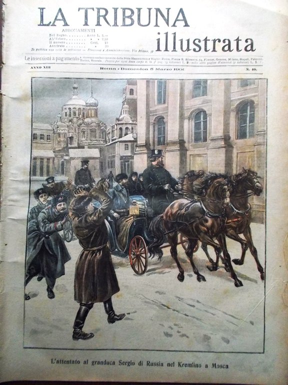La Tribuna Illustrata 5 Marzo 1905 Sergio di Russia Cremlino Dell'Acqua Diamanti