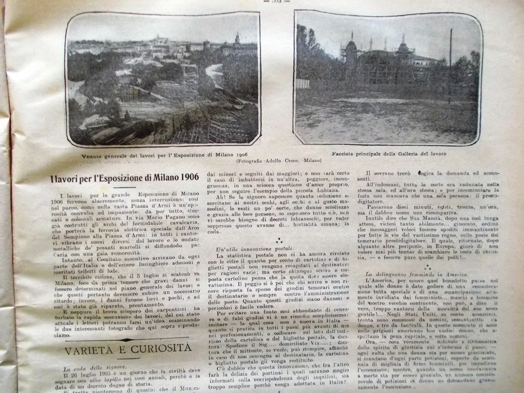 La Tribuna Illustrata 6 Agosto 1905 Sandri Merletti Incendio Milano Zola Pistoia