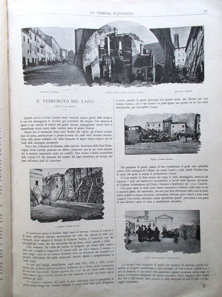 La Tribuna Illustrata 7 Febbraio 1892 Terremoto Lazio Genzano e Lavinia Palissy
