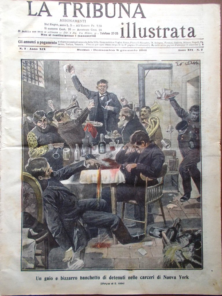 Un gaio e bizzarro banchetto di detenuti nelle carceri di New York (disegno di E. Abbo)