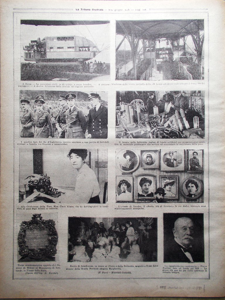 La Tribuna Illustrata 8 Giugno 1919 Russia Roma Dirigibile Football Trieste Re