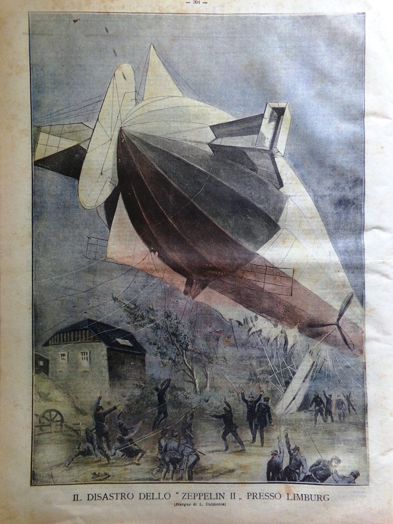 Il disastro dello "Zeppelin II" presso Limburg (disegno di L. Dalmonte)