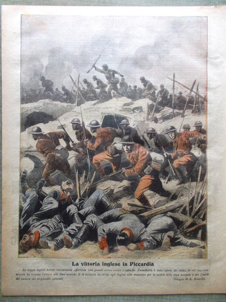 Le truppe inglesi hanno recentemente effettuata una grande azione contro i tedeschi in Piccardia (disegno di A. Minardi)