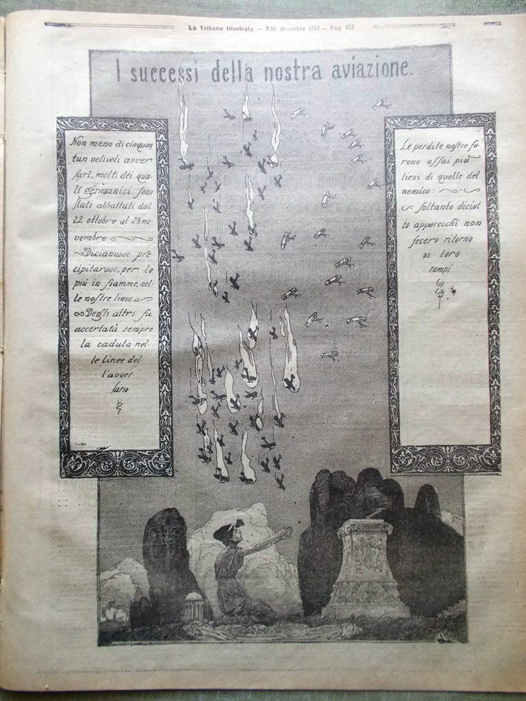 La Tribuna Illustrata 9 Dicembre 1917 WW1 Clemenceau Florian Franchet Aviazione