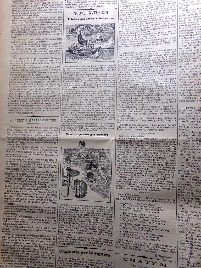 Nuove invenzioni: triciclo acquatico e terrestre, nuovo apparato per nuotare