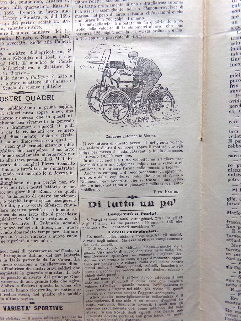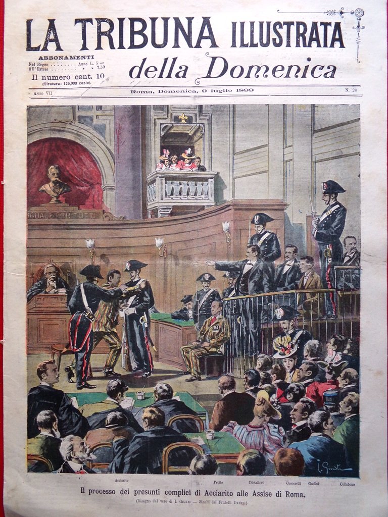 La Tribuna Illustrata 9 Luglio 1899 Processo Acciarito Ministero Francia Dreyfus