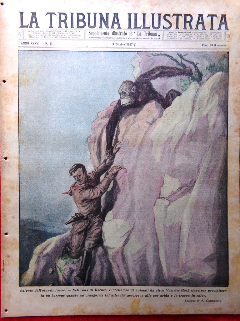 La Tribuna Illustrata 9 Ottobre 1927 Mayor Romano Mussolini Bersaglieri Scimmie