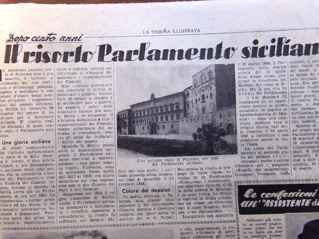 La Tribuna Italia Illustrata 1 Giugno 1947 Parlamento Siciliano Charlot Petrolio