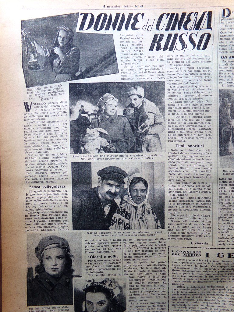 La Tribuna Italia Illustrata 11 Novembre 1945 Gallup Donne Cinema Russo Brink's