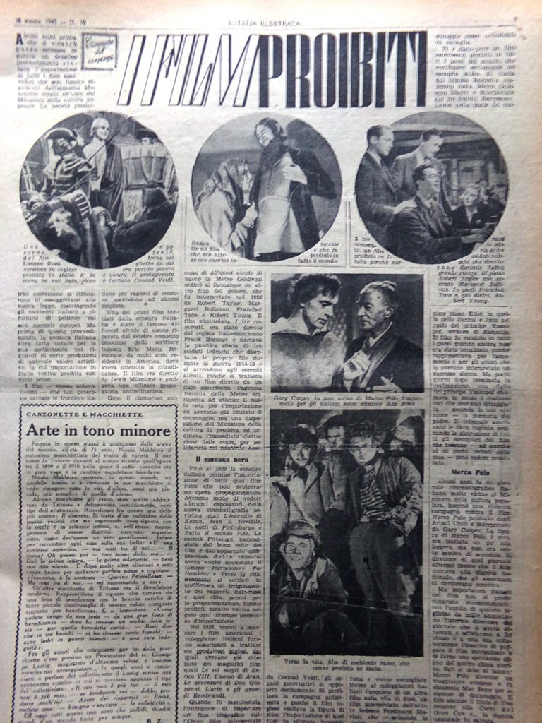 La Tribuna Italia Illustrata 18 Marzo 1945 WW2 America Croce Film Proibiti Mine