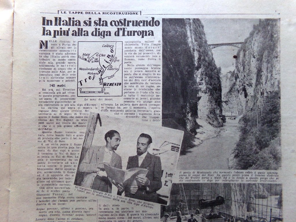La Tribuna Italia Illustrata 19 Ottobre 1947 Diga Santa Giustina Garbo Eva Peron