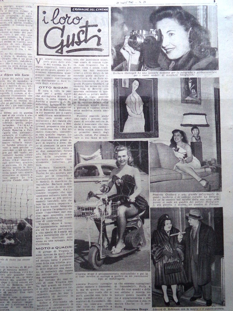 Cinema: i loro gusti. Virginia Mayo, Paulette Goddard, Edward G. Robinson, Barbara Stanwych