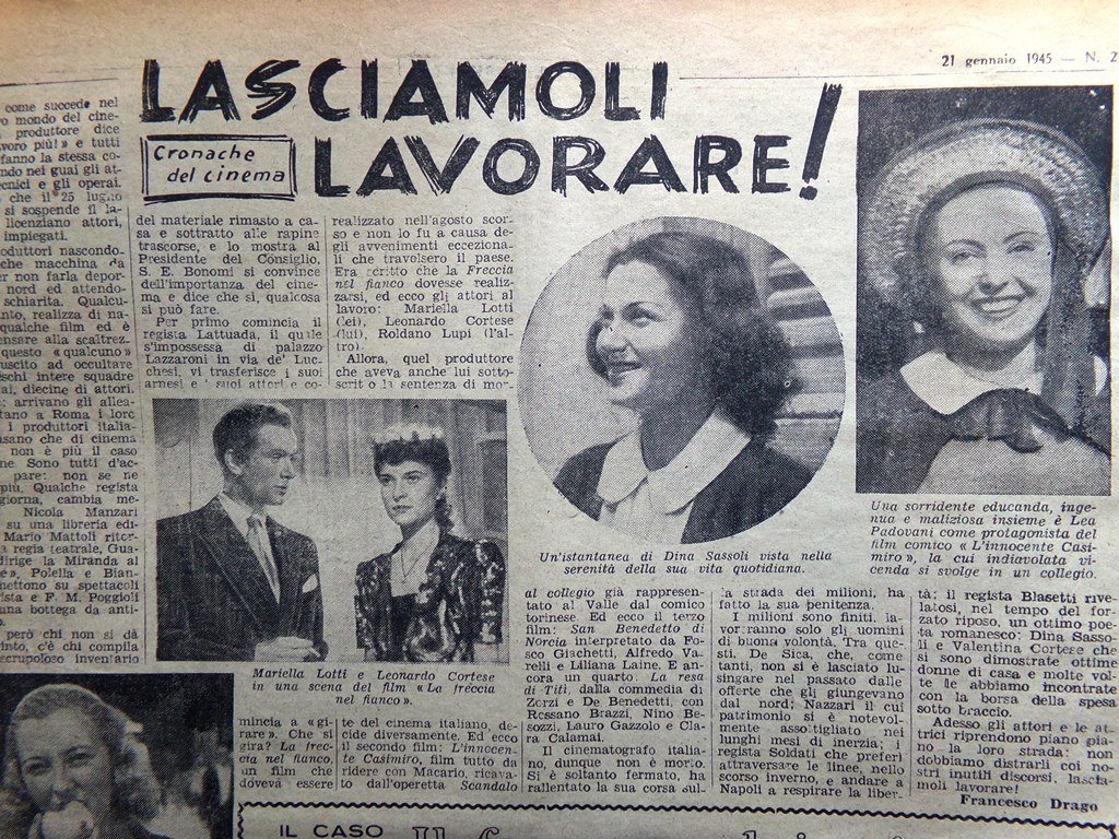 Cinema: lasciamoli lavorare! Mariella Lotti e Leonardo Cortese, Valentina Cortese, Dina Sassoli
