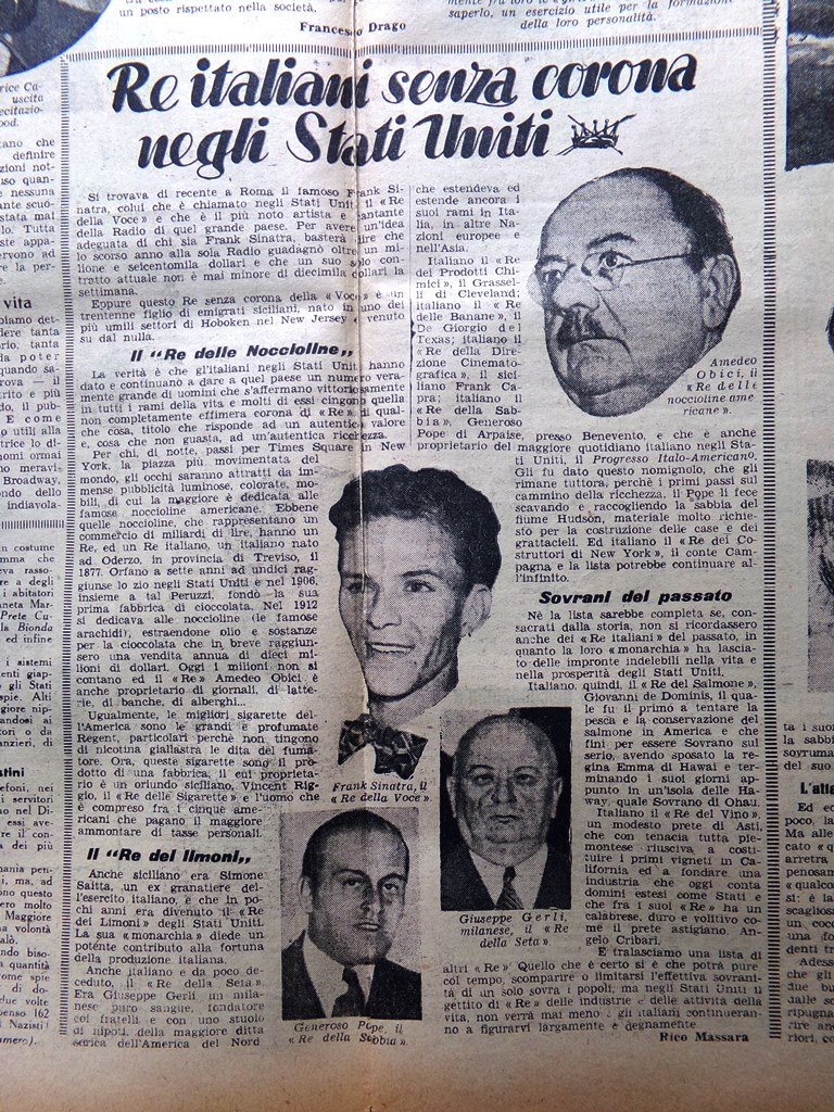 Re italiani senza corona negli Stati Uniti: Amedeo Obici, Frank Sinatra, Giuseppe Gerli, Generoso Pope