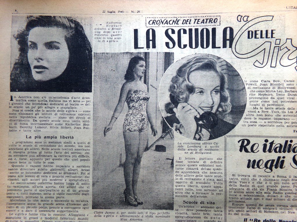 La Tribuna Italia Illustrata 22 Luglio 1945 WW2 Girls Sinatra Carretta Salvatori