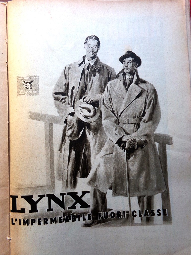 Pubblicità (a tutta pagina): Odol, Linee Triestine per l'Oriente, Lama Italia, Lenti Salmoiraghi, Villanova, Lynx, Borsalino, Agip, Antares, Bellezze d'Italia, Gincana Bisleri, Aspirina, Impermeabili Pirelli