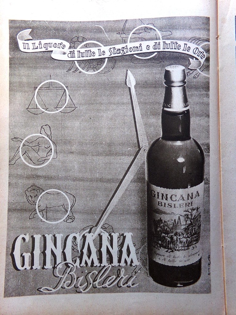 Pubblicità (a tutta pagina): Servizio Esso, Italstrade S.A., Banco di Roma, Gincana Bisleri, Bellezze d'Italia, Caldaie Ideal "Neo Classico", Lotteria di Merano, Agip, Impermeabili Pirelli, Brolio Chianti, Duco