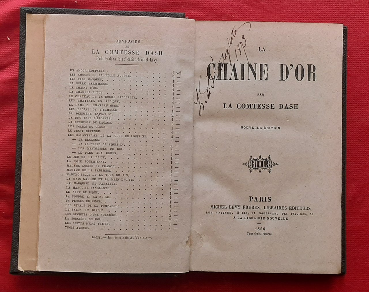 Stampato presso la Librairie Michele Lévy, Paris nel 1866