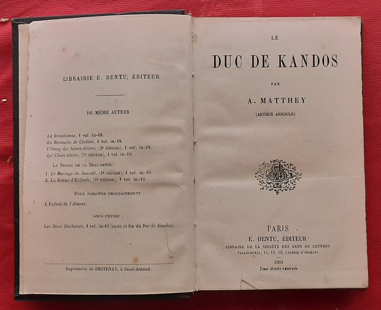 Stampato presso la Librairie E.Dentu, Paris, nel 1881