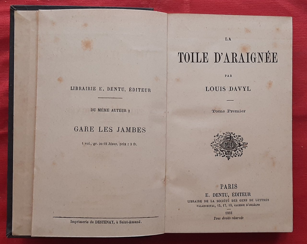 Libro Antico Originale del 1881 di Louis Davyl La Toile d'Araignée Vol. 1