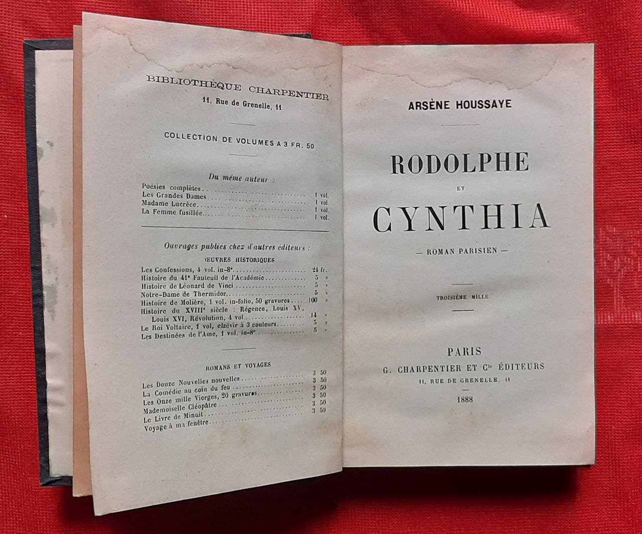 Libro Antico Originale del 1888 di Arsène Houssaye Rodolphe et Cynthia Francese