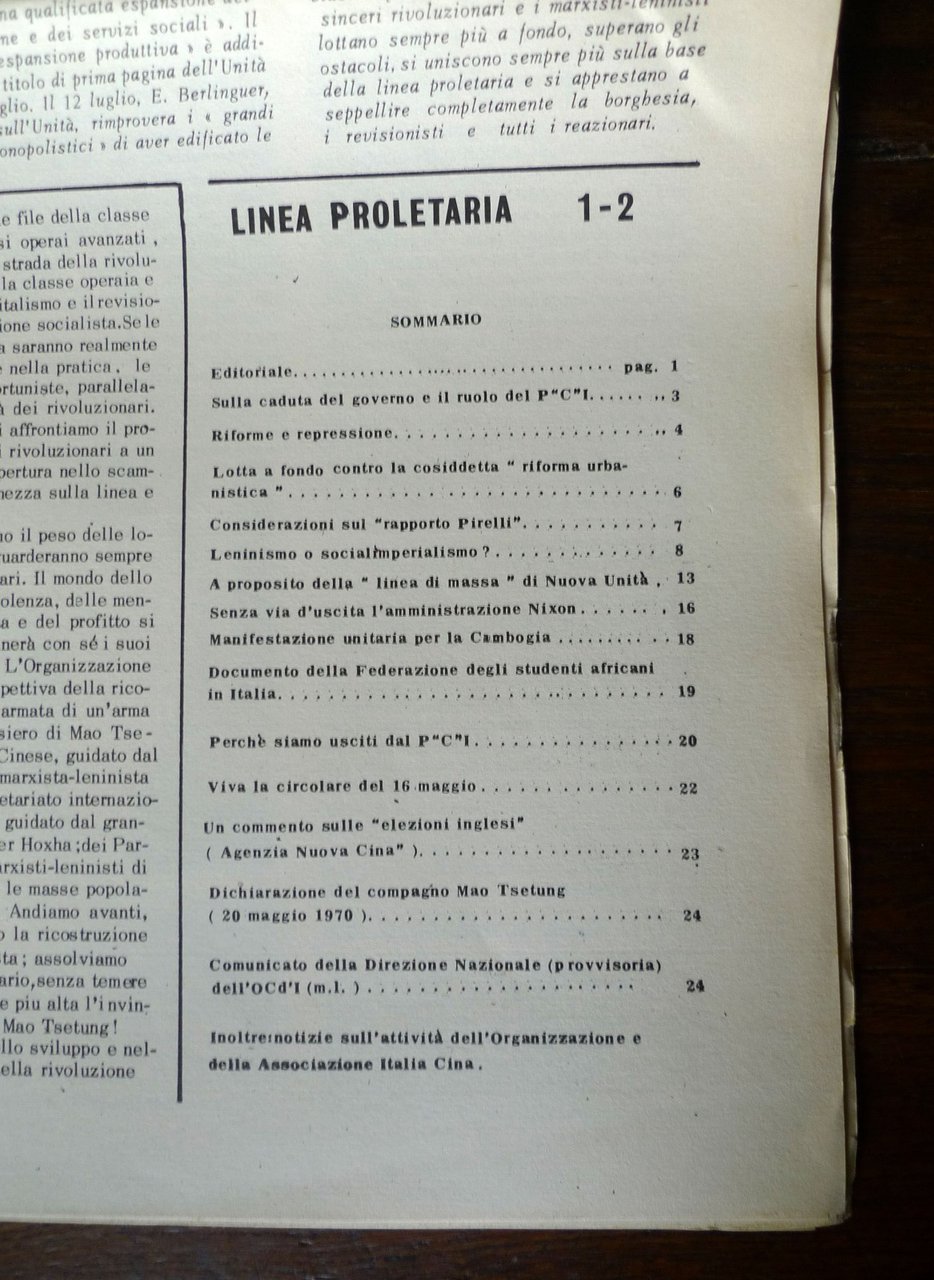 LINEA PROLETARIA n.1-2 Luglio-Agosto 1970[comunismo,marxisti-leninisti