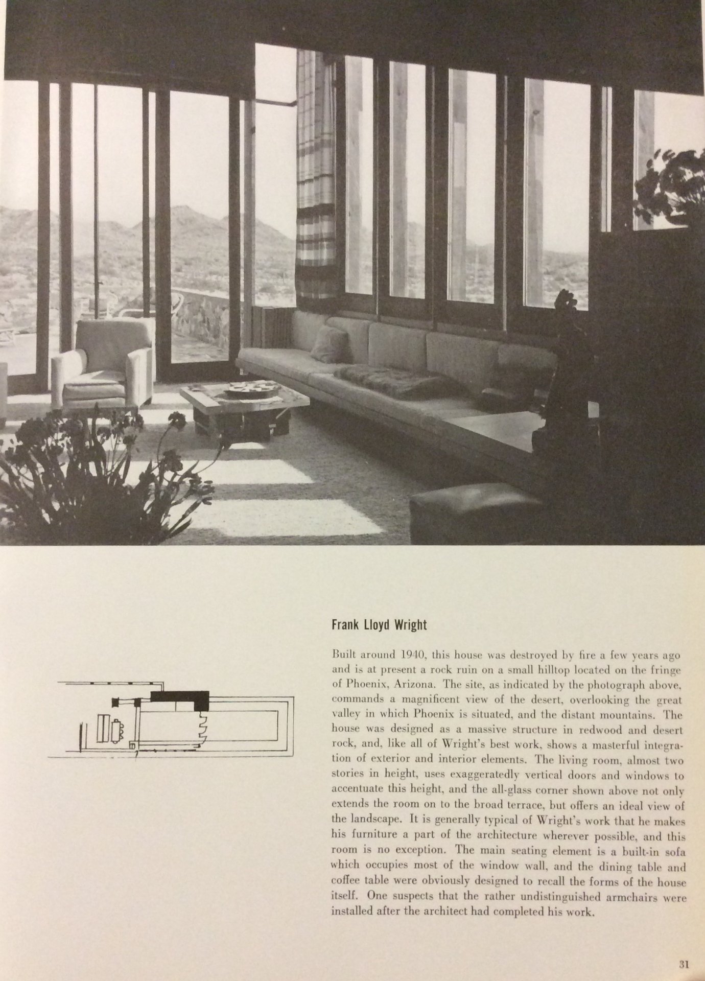In-4 p., tela editoriale, pp. 145, interamente illustrato da planimetrie e fotografie in bianco e nero, con relativo testo descrittivo. Volume n. 1 del periodico Interiors library (edito a cura di George Nelson (19081986), noto designer, grafico e architetto statunitense), dedicato agli spazi abitativi ideati da noti decoratori d'interni e architetti, tra cui: Franco Albini, R.L. Baumfeld, Walter R. Bogner, Marcel Breuer, John Carden Campbell, Luciano Canella, Paolo Chessa, Luigi Figini, Walter Gropius, Le Corbusier e Pierre Jeanneret, Paul Laszlo, George Nelson, Eliot Noyes, Frank Lloyd Wright, Eero Saarinen, J. Stanley Sharp, e num. altri. Ben conservato.